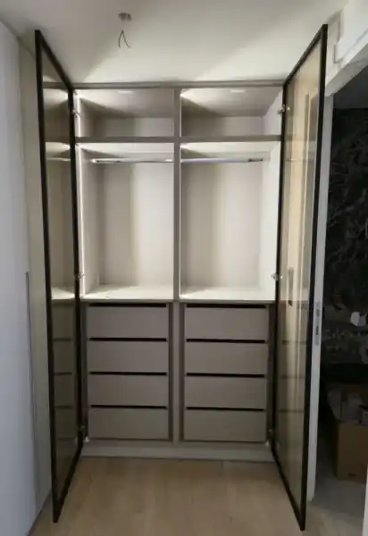 Επιλέγετε σχέδια, υλικά και μηχανισμούς και κατασκευάζουμε την ντουλάπα ειδικά για το χώρο σας.